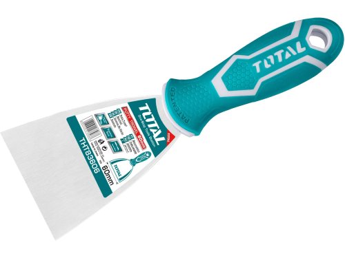 Špachtle nerezová s ergonomicky tvarovanou protiskluzovou patentovanou rukojetí. Tepelně tvrzeno a leštěno. Jedná se o jednoduchý ruční nástroj užívaný zejména při řemeslných činnostech nebo domácích pracích. Užívána ve štukatérství, malířství, natěračství, opravách karosérií nebo při umělecké tvorbě apod. Je vhodná pro roztírání sádry nebo jiných tmelících hmot či k odstraňování staré malby a nátěrů. EAN 6925582178968
