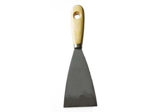Nerezová špachtle s dřevěnou rukojetí se využívá k nanášení a roztírání stavební sádry nebo jiných tmelících hmot či k odstraňování staré malby a nátěrů.