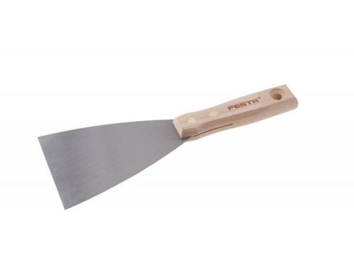 Malířská stěrka (špachtle) s broušeným ocelovým břitem a s dřevěnou nýtovanou rukojetí. Malířské stěrky se použivají pro zapravování děr, zeškrabavání přebytečného materiálu apod. Šířka břitu 100 mm. EAN 8590804049852