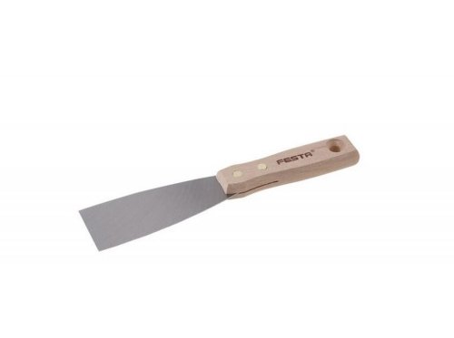 Malířská stěrka (špachtle) s broušeným ocelovým břitem a s dřevěnou nýtovanou rukojetí. Malířské stěrky se použivají pro zapravování děr, zeškrabavání přebytečného materiálu apod. Šířka břitu 50 mm. EAN 8590804049821