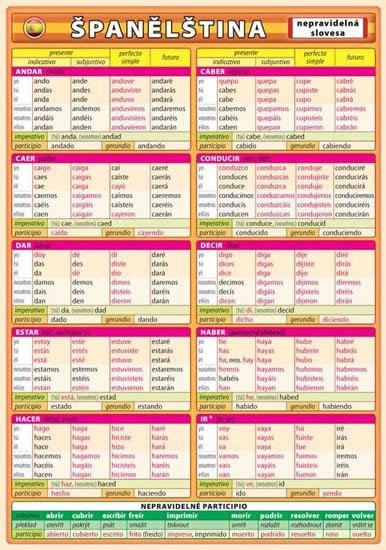 Přehledné tabulky časování španělských nepravidelných sloves.