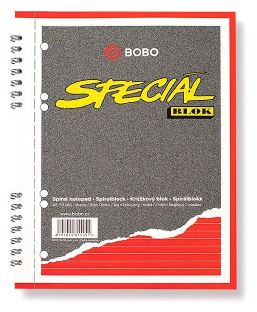 Ideální pomocník do práce i do školy. Díky perforaci můžete listy snadno odtrhnout a založit si je do pořadače. br br Díky svým vlastnostem, jako je perforace a děrování, se tento blok stane všestranným pomocníkem pro všechny, kteří potřebují uchovat svoje zápisky. br brLinkovaná lineatura je prostě klasika, která nezklame a neomrzí. Proto si tento sešit oblíbí jak studenti, tak všichni, kteří už mají školní léta dávno za sebou. br brPoznámkový blok Speciál br• Formát: A5 br• Počet listů: 50 br• Lineatura: Linkovaná br• Gramáž: 70 g br• Vazba: Dvojitá kroužková Twin Wire br• Děrování pro zakládání do pořadačů br• Perforace stránek pro snadné odtrhávání br brKroužková vazba Twin Wire umožňuje snadné otáčení listů až o 360° bez posunutí stránek. Zápisník zůstane otevřený na zvolené stránce a (na rozdíl od šitých vazeb) se nezavře.