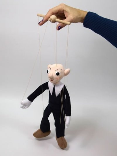 Textilní loutka s dřevěným vodícím křížem. Správná hračka 2011 - vybráno odborníky.Nevhodné do 3 let, nebezpečí uškrcení