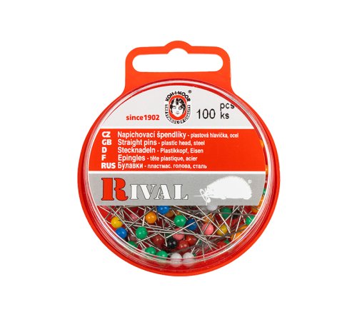 • ocelové špendlíky kalené s barevnou plastovou hlavičkou