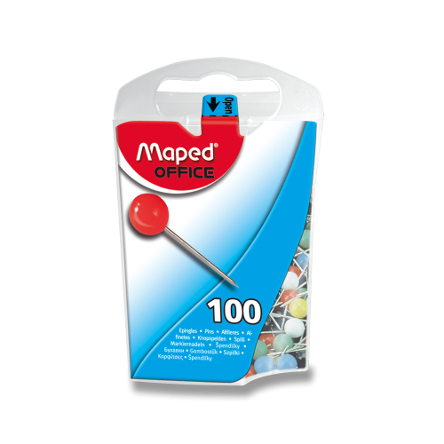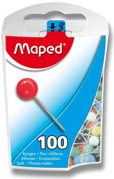 Tabulové špendlíky, ocelový hrot. Plastová hlavička průměr 5 mm, 100 ks. Mix barev.