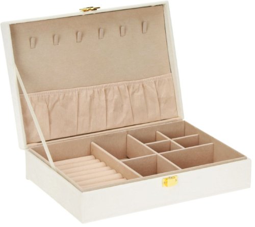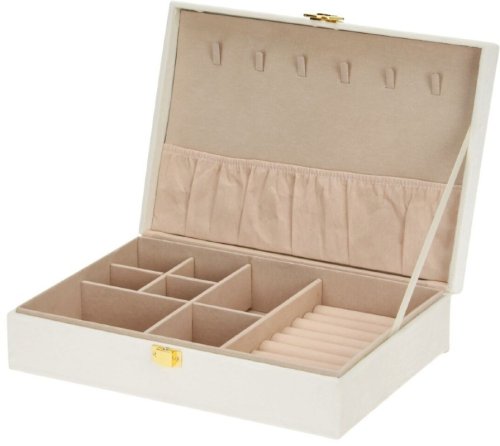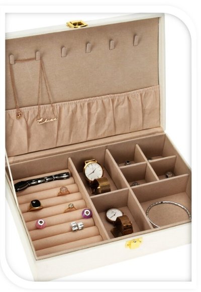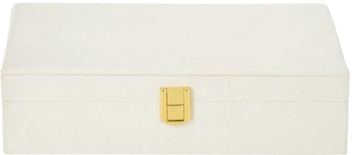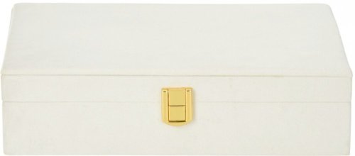 - bílá šperkovnice se semišovým povrchem- perfektní pro organizované a přehledné umístění šperků i hodinek- chrání šperky před prachem a poškozením- uvnitř několik přihrádek na drobné šperky, náramky, …