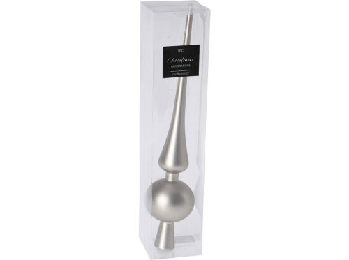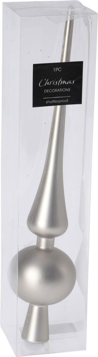 Špička na stromek 29 cm, STŘ, mix. výška: 29 cm mix barev: stříbrná lesklá, stříbrná matná, stříbrná gliter Ozdobná špička nesmí chybět na žádném vánočním stromku.