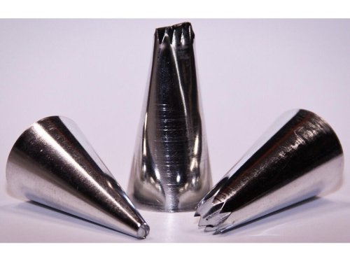 Balení obsahuje 3 ks zdobicích špiček. Ideální pomocník pro zdobení dortů a dezertů. Špičky se také hodí k pečení a plnění zákusků a cukroví. Vyrobeno z pocínovaného plechu. Připraveno k použití s bavlněným cukrářským sáčkem. Sáček není součástí balení.
