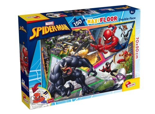 Spider-man Puzzle MAXI-FLOOR oboustranné. Rozměry složeného obrázku 70x50 cm. Balení obsahuje 150 dílků. Jedna strana je potisknutá barevně, druhá je určena k vymalování.