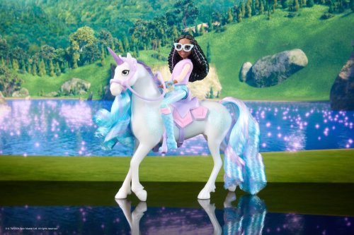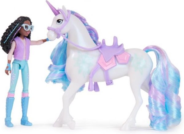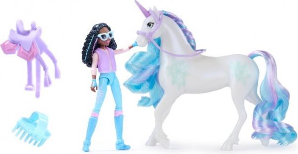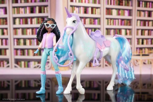 sada inspirovaná animovaným seriálem od NETFLIXu a bestsellerovou knižní sérií panenka má detailně propracované rysy a pohyblivé klouby hřívu a ocas jednorožce lze rozčesávat přiloženým kartáčem uzda a sedlo jsou odnímatelné výška panenky: cca 11,5 cm; výška jednorožce: cca 13 cm