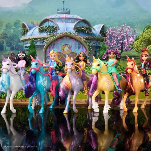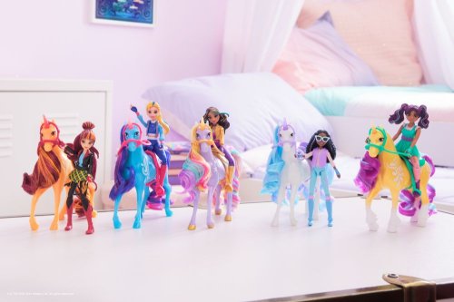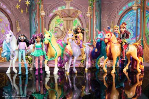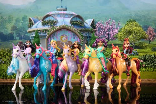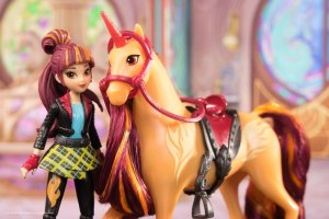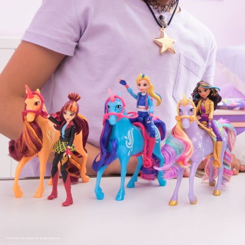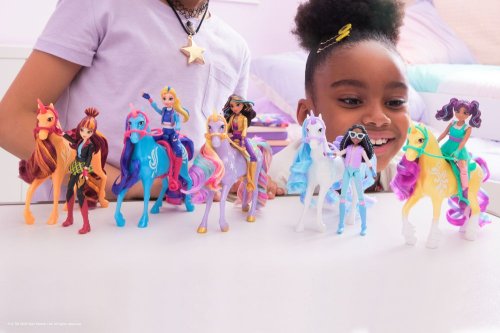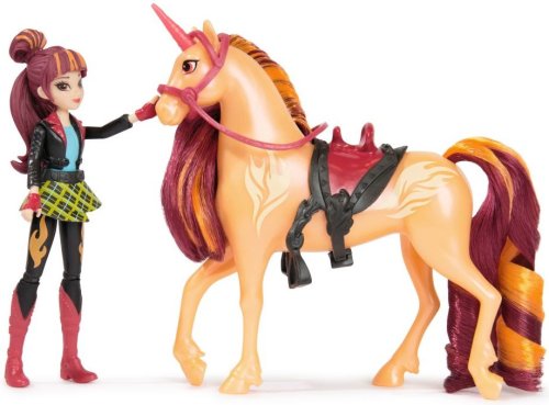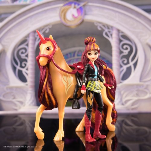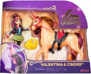 sada inspirovaná animovaným seriálem od NETFLIXu a bestsellerovou knižní sérií panenka má detailně propracované rysy a pohyblivé klouby hřívu a ocas jednorožce lze rozčesávat přiloženým kartáčem uzda a sedlo jsou odnímatelné výška panenky: cca 11,5 cm; výška jednorožce: cca 13 cm