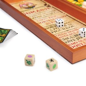 Stopující lvi. Dusající nosorožci. Chňapající krokodýli. V divokém světě Jumanji vás od nich všech dělí jen jediný hod kostkou. Vezměte figurku, hoďte osmistěnnou kostkou a procházejte džunglí. Otočte kartu s nebezpečím. Pomocí dekodéru odhalte tajnou zprávu a zjistěte, zda nedojde ke katastrofě. Vaši spoluhráči musí závodit s časem, aby vás zachránili. Džungle postupně začíná zaplňovat mřížku zkázy. Pokud se mřížka zaplní, džungle vás přemohla a vy i vaši spoluhráči jste prohráli. Pokud jste první, kdo se dostane doprostřed, než se mřížka zaplní, zakřičte „Jumanji!“ a vyhráváte! Rozměr balení: 38,4x29x5,7. Věk 8+