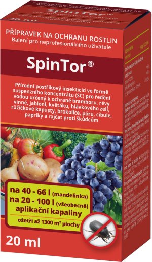 Spintor je přírodní postřikový insekticid ve formě suzpenzního koncentrátu pro ředění vodou určený k ochraně brambor, révy vinné, jabloní, květáku, hlávkového zelí, růžičkové kapusty, brokolice, póru, cibule, papriky a rajčat proti škůdcům. Spintor je požerový a kontaktní insekticid. Příjem účinné látky škůdci nastává příjmem potravy i přímým kontaktem s látkou. Působení účinné látky spočívá v ovlivňování aktivity neuronů hmyzích jedinců. Účinek nastává již po několika hodinách, následně dochází k úhynu hmyzích škůdců. Spintor účinkuje na škůdce z řádu motýlu, brouků, dvoukřídlých a třásnokřídlých, nepusobí na savý hmyz (mšice).