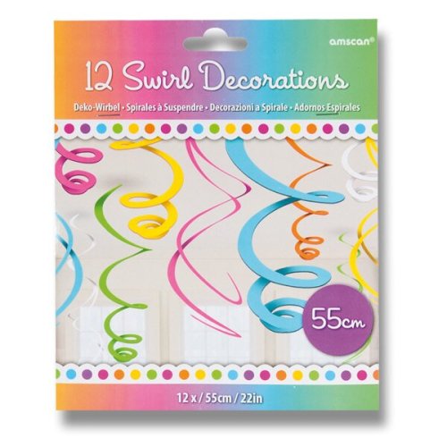 Barevné plastové spirály, mix barev. Délka 55,8 cm, 12 kusů v balení.
