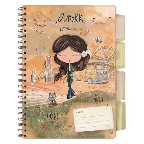 Sešit se záložkami/s plastovými rozřaďovači různých barev. <br> • s praktickou kapsičkou pro dívky s motivem známého děvčátka Anekke z dílny španělské designérky, velikost A5, linkovaný, 100 listů, 80g/m2 <br> • nezbytná součást školních potřeb <br> • hodí se i do kanceláře