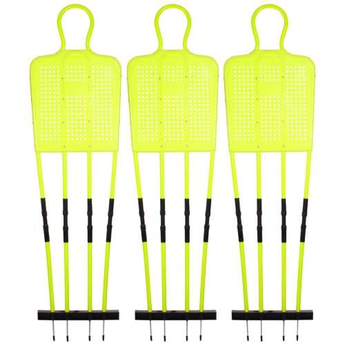 Tato sada obsahuje tři tréninkové figuríny Merco Split Soccer Dummy, což je perfektní pomůcka pro každý fotbalový klub. Slouží k nácviku přesnosti přímých kopů, herních situací při zahrávání trestných kopů a zároveň i jako tréninková pomůcka pro fotbalové brankáře při těchto situacích. Velkou výhodou je její skladnost, jelikož se skládá ze dvou lehce rozpojitelných částí. Split Soccer Dummy má ocelové bodce pro použití pouze do travnatého povrchu. Je celá vyrobená z plastu s kovovými pružinami. Navíc jsou tyto tři skládací figuríny dodávané v praktické polyesterové tašce s poutky přes rameno pro snadnější přenášení a uskladnění. Parametry: - balení: 3 ks panáků - včetně praktické tašky - materiál: plast, ocel - průměr tyče: 25 mm - celkové rozměry před složením: cca 118 x 52 x 8 cm - celkové rozměry po složení: cca 193 x 52 x 4 cm - výška hrotů: 13 cm - váha jednoho panáka: cca 4,6 kg - hmotnost balení: cca 15 kg - použití do travnatého povrchu