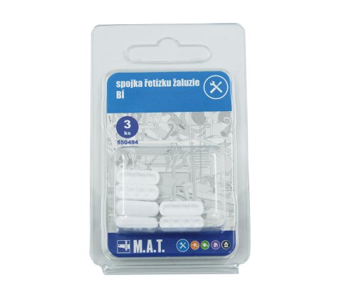 Spojka řetízku žaluzie BÍ (3 ks).barva: bílábalení: 3 ksJedná se o univerzální spojku řetízku.Použití pro všechny typy žaluzií od všech výrobců.