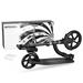 - je vybavena velkými kolečky – přední 230 mm a zadní 180 mm, které výrazně zvyšují rychlost a komfort jízdy, a zároveň ovlivňují manévrovatelnost koloběžky