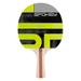- rukojeť a deska pálky jsou vyrobeny ze 3 vrstev tvrdého dřeva, a dřevo pálky je oboustranně potaženo vysoce kvalitní gumou s pěnou o tloušťce 1,3 mm