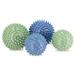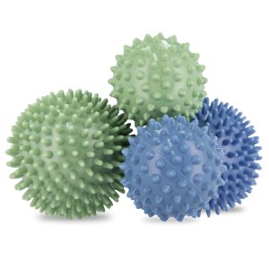 Sada GRESPI DUO se skládá ze 4 masážních míčků (2 míčky o průměru 6,5 cm a 2 míčky o průměru 9 cm) s různým stupněm tvrdosti - medium (zelené) a very hard (modré), což vám dává možnost zvolit si míček podle typu bolesti či svalového napětí v dané části těla, která vyžaduje masáž. Míčky mohou být také použity během tréninku k posílení břicha, chodidel, nohou, krku, ramenou či rukou. Díky jejich struktuře si zároveň během cvičení můžete dopřát jemnou či intenzivní masáž. Míčky GRESPI DUO jsou vhodné i pro antistresová cvičení.