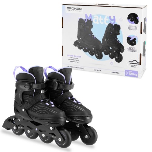 Nastavitelné kolečkové brusle Spokey MATTY jsou nejlepší volbou jak pro začátečníky, tak pro zdokonalování vašich dovedností! Jsou stvořeny pro objevování vášně pro bruslení - pokud chcete začít své dobrodružství, pomohou vám zvládnout základy. A pokud již základy ovládáte, budou brusle MATTY ideální volbou pro rekreační a dynamickou jízdu. To vše díky použití nejlepších parametrů a moderních technologických řešení!