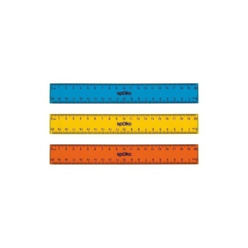 Ploché pravítko s předtištěnou stupnicí o délce 20 cm. Zkosená hrana pro přesnější a pohodlnější rýsování. • měřítko: 20 cm • materiál: pevný a odolný polystyren • předtištěná stupnice • mix barev: žlutá, modrá, oranžová