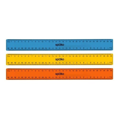 Ploché pravítko s předtištěnou stupnicí o délce 30 cm. Zkosená hrana pro přesnější a pohodlnější rýsování. • měřítko: 30 cm • materiál: pevný a odolný polystyren • předtištěná stupnice • mix barev: žlutá, modrá, oranžová