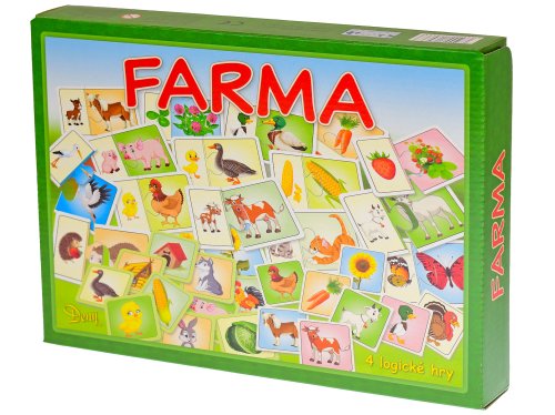 Pomocí těchto her děti získávají veselým a hravým způsobem nové poznatky o rostlinách a zvířátkách žijících na farmě. Hry rozšíří dětem vědomosti o přírodě a zlepší jim logické myšlení. Balení obsahuje: 106ks obrázkových kartónových karet, pexeso a návod ke hrám.
