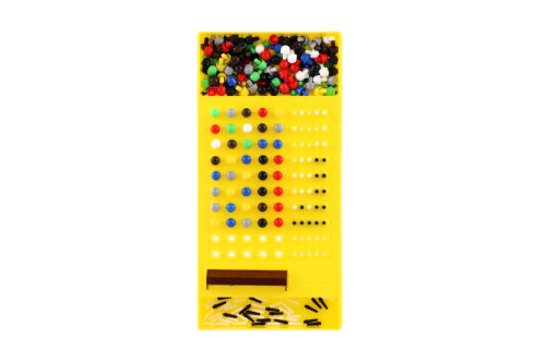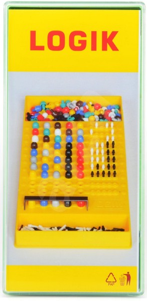 Hráč nastaví pod stříškou kombinaci z pěti barevných kolíků a druhý hráč se ji snaží během deseti pokusů odhalit, po každém kole má indicie kolik kolíků je umístěno správně. Rozměr krabice: 14 x 29 x 3 cm Vodné od 3 let