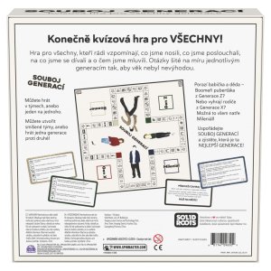 Jedinečná kvízová hra pro dva a více hráčů, která prověří vaše znalosti z různých oblastí lidského života. Není to tak jednoduché, otázky se týkají jak významných událostí, kultury nebo také světa reklamy, módy a různých trendů za posledních skoro sto let. Otázky jsou rozdělené do čtyř časových skupin – Boomer, generace X, mileniálové, generace Z. Hráči mohou hrát samostatně nebo v týmech. Pozor na karty Výzva, kde jde o prověření důvtipu a schopností. Generace nebojují proti sobě, „bojují“ proti sobě jednotlivá časová období. Hráči: 2 a více. Doba hraní: 20 – 60 minut. Pouze pro český trh. Pro děti od 10 let.