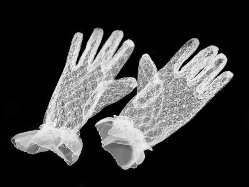 Elegantní krajkové rukavice představují dokonalý doplněk pro každou slavnostní příležitost. Výborně se přizpůsobí své majitelce, zápěstí mají ozdobené volánkem. Díky všité pružence perfektně drží - nesklouzávají. Krátké rukavičky nevyžadují nutně velkou večerní róbu jako jejich dlouhá varianta. Využijete je i při letních večerních party, na čajové dýchánky apod. Jsou ideální na taneční večery. Skvěle doplní večerní šaty nebo koktejlové outfity.