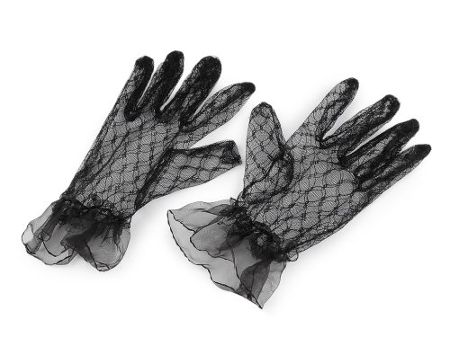 Elegantní krajkové rukavice představují dokonalý doplněk pro každou slavnostní příležitost. Výborně se přizpůsobí své majitelce, zápěstí mají ozdobené volánkem. Díky všité pružence perfektně drží - nesklouzávají. Krátké rukavičky nevyžadují nutně velkou večerní róbu jako jejich dlouhá varianta. Využijete je i při letních večerních party, na čajové dýchánky apod. Jsou ideální na taneční večery. Skvěle doplní večerní šaty nebo koktejlové outfity.