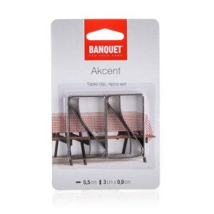 Spony na ubrus AKCENT slouží pro uchycení a napnutí ubrusu na desku stolu.