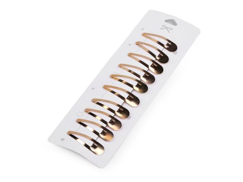 Sponek není nikdy dost. To ví každá správná dívka. Nabízíme vám [sadu kovových sponek pukaček]. Na každé kartě je 10 ks sponek pukaček. Karta je opatřená výsekem pro zavěšení a vystavení sponek. Sponky jsou vyrobené z kvalitního materiálu, který dlouho drží svůj tvar, funkčnost i barvy. [Sponky jsou lesklé, černé sponky č. 9 mají matný povrch.] Výrobek není vhodný pro děti do 3 let.
