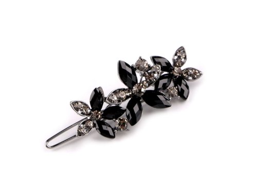 Elegantní sponka do vlasů s broušenými kamínky ve tvaru květů je dokonalým doplňkem pro oživení každého účesu. Je vyrobená z kvalitního bižuterního kovu, na zadní straně má malé zoubky, ve vlasech dobře drží. Využijete ji na různé společenské akce, ale také na běžné nošení, zajímavě ozdobí váš účes. Je umístěná na plastové kartě, která je vhodná k zavěšení na prodejní stojan.