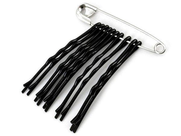 Oblíbené vlasové sponky jsou černě lakované. Jsou kvalitní, české výroby, dlouho si drží svou černou barvu. Díky své pevnosti dobře drží ve vlasech. [Na jednom svazku je 10 ks sponek. ]