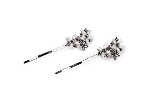 Elegantní sponky do vlasů zdobí lesklé broušené kamínky. Jsou vyrobené z kvalitního bižuterního kovu, ve vlasech výborně drží. Využijete je na různé společenské akce, ale také na běžné nošení, zajímavě ozdobí váš účes. Na jedné kartě jsou 2 sponky. Karta je vhodná k zavěšení na prodejní stojan.