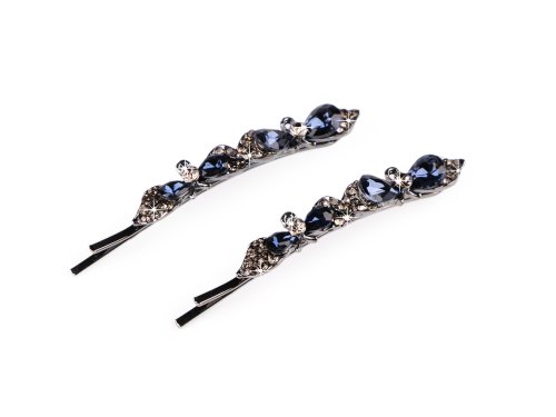 Elegantní sponky do vlasů zdobí lesklé broušené kamínky. Jsou vyrobené z kvalitního bižuterního kovu, ve vlasech skvěle drží. Využijete je na různé společenské akce, ale také na běžné nošení, decentně ozdobí váš účes. Na jedné kartě jsou 2 sponky. Karta je vhodná k zavěšení na prodejní stojan.