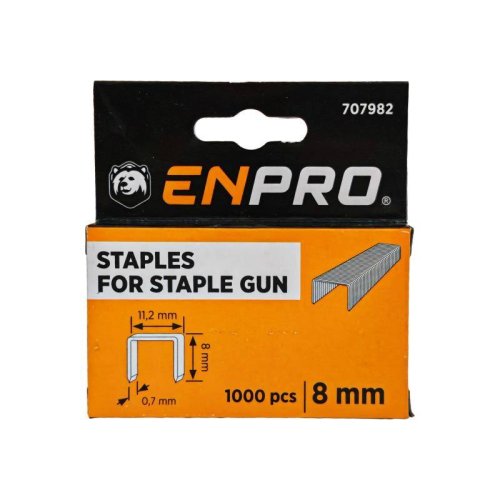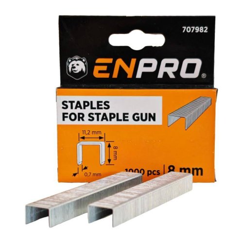ocelové spony ENPRO do sponkovačky kvalitní, nízkouhlíková ocel šíře spon: 11,3 mm síla spon: 0,7 mm délka spon: 4 mm, 6 mm, 8 mm, 10 mm, 12 mm, 14 mm