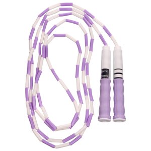 Dětské švihadlo z barevných článků se jmenovkou v rukojeti.