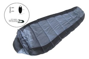 Spací pytel mumiový MUMMY 1, 210 x 80/55 cm , vrchní materiál je 190T polyester, vnitřní vrstva - tafatta = PES+bavlna, tepelná vložka - duté vlákno 200 g/m2, doporučeno až do 0 stupňů C, hmotnost 1,35 …