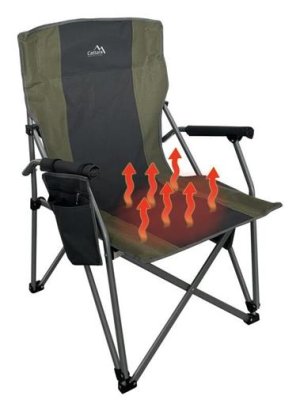 Vyhřívaná židle, 3 úrovně, USB napájení, nosnost 120 kg, skládací konstrukce, boční kapsa.