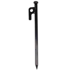 Pevný ocelový stanový kolík, délka 20 cm, průměr 1 cm.
