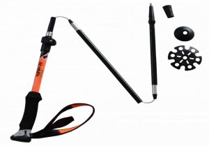 Velmi lehké trekingové hole o výšce 135cm, sofistikovaný skládací mechanismus, wolframové hroty a EVA pěnová rukojeť Barvy: black, fluo orange