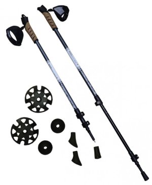 Teleskopické hole 3-dílné AL + grafit, NORDIC Walking, ANTISHOCK, 65 - 135 cm. 1 pár na kartě s příslušenstvím - vyměnitelné kroužky a gumové koncovky.