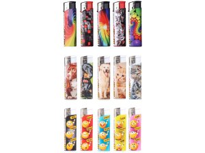 Regulace plamene hoření, opatřený dětskou pojistkou, různé barevné provedení, slouží k podpalování cigaret, svíček.