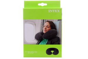 Cestovní nafukovací polštář o velikosti cca 36 x 30 x 10 cm.