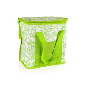 Chladící taška velká 20 l - dekor 1, zelená s bílými květy.