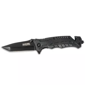 Zavírací nůž s 2 pojistkami, 3 čepele - klasický nůž, pilka a univerzální nůž s ozubením a břitem, kvalitní nerezová ocel, ergonomické střenky s protiskluzovým povrchem, pouzdro pro zavěšení za …