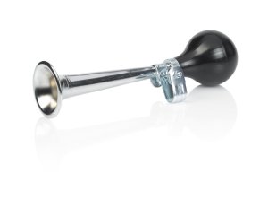klasický klakson v retro styluzábavná alternativa k zvonku, zejména v případě dětských kols kovovou sponou pro snadnou montáž na řídítkapochromované kovové pouzdro